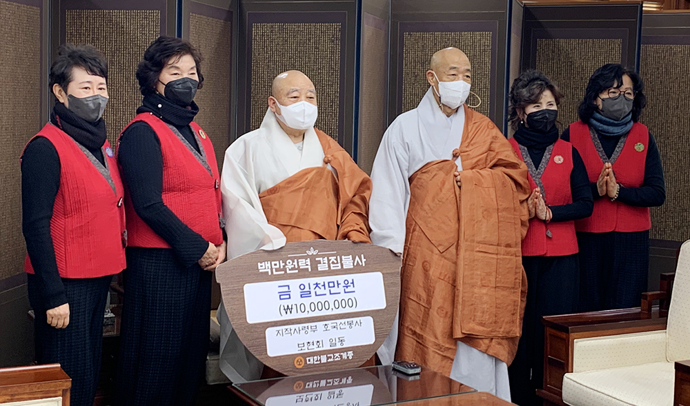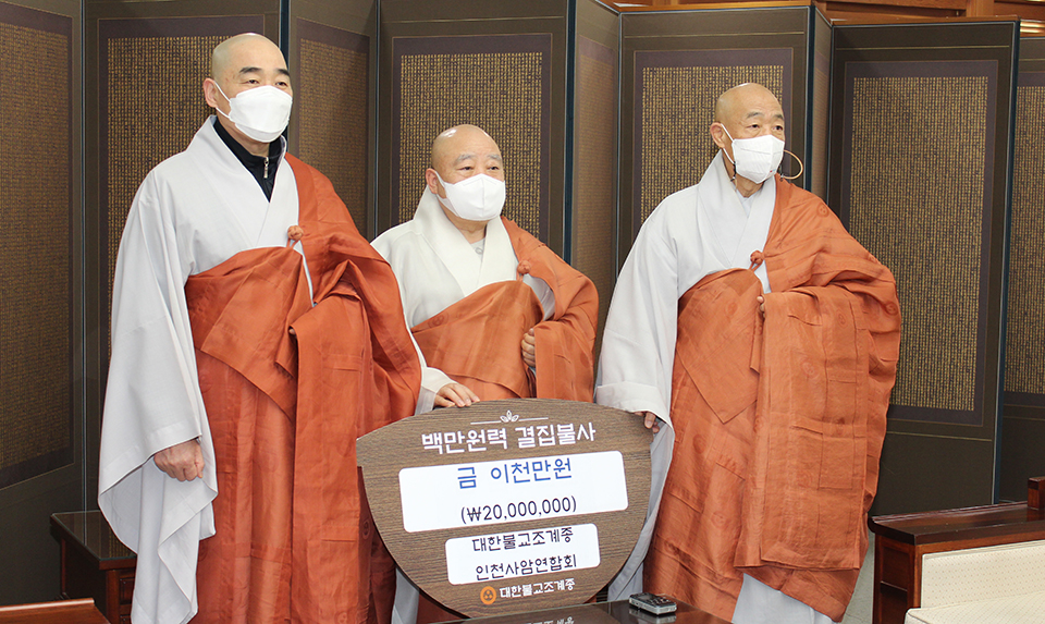 http://news.bbsi.co.kr/news/articleView.html?idxno=3059909 (조계종 인천사암연합회 등 호국홍제사 건립에 후원 ... 총 5천만원)