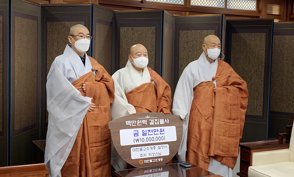불기2566년(2022) 2월 22일 15시에 조계종 총무원에서 호국 홍제사 불사금 전달식이 있었습니다.