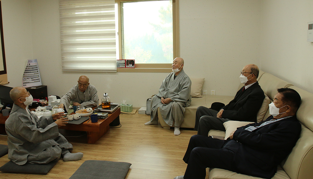 교구장 미광 선일 스님과 차담을 나누셨습니다.