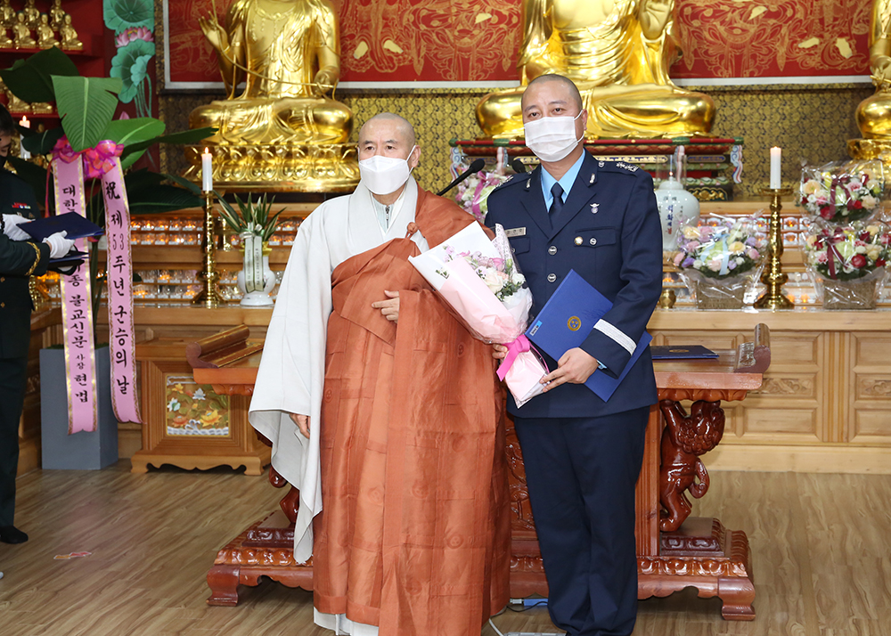 총무원장스님의 표창장을 계룡대 호국사 주지 진홍 정연호 법사님께서 수여하셨고,