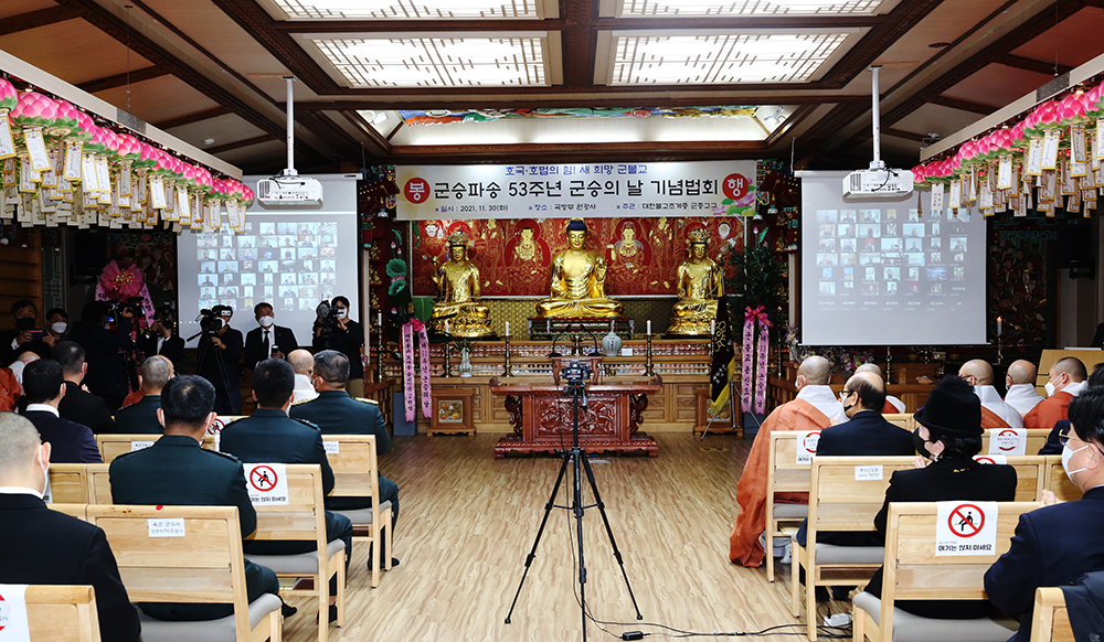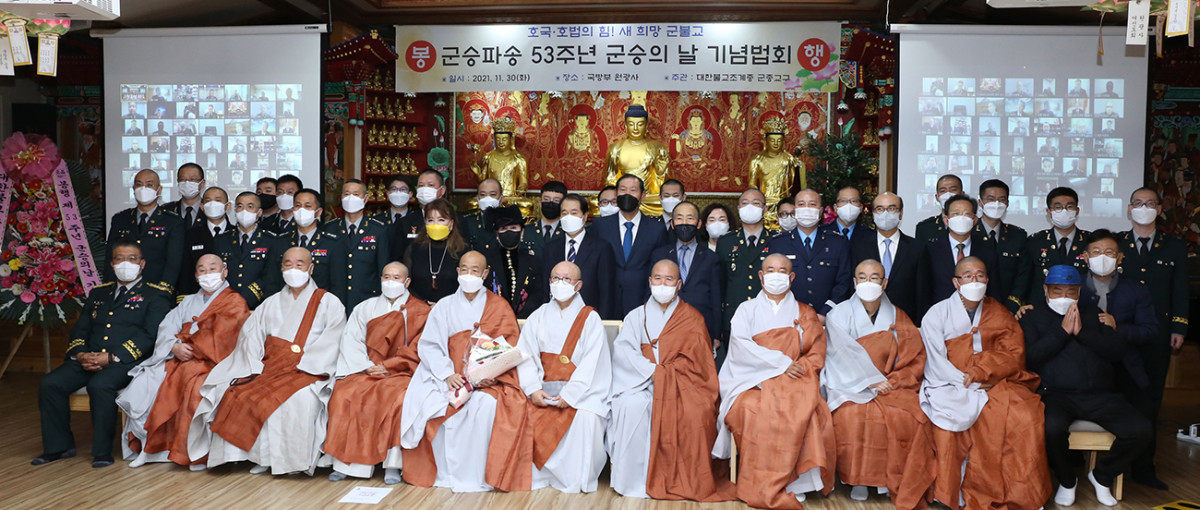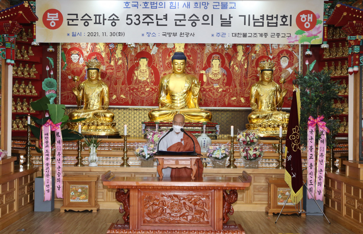 2021년 11월 30일 화요일 오후 3시 국방부 원광사 큰법당에서 제53주년 군승의날 기념 법회를 봉행했습니다.