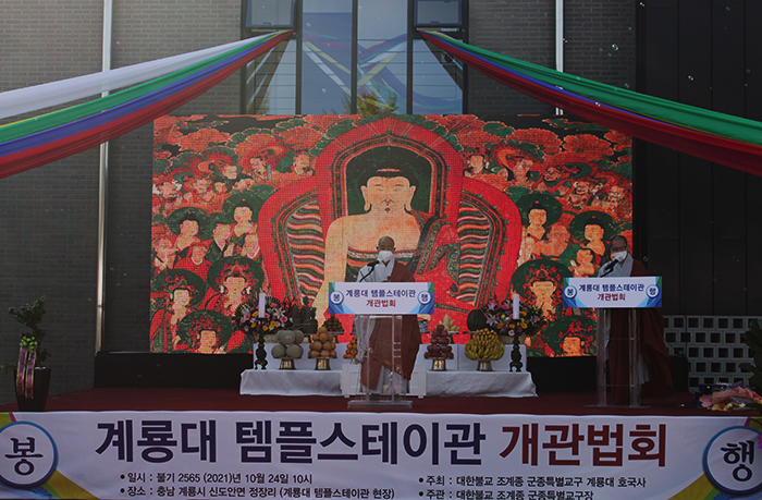 10월 24일 일요일 오전 10시부터 11시 30분까지 실시했던 계룡대 템플 스테이관 개관 법회 봉행 현장입니다.