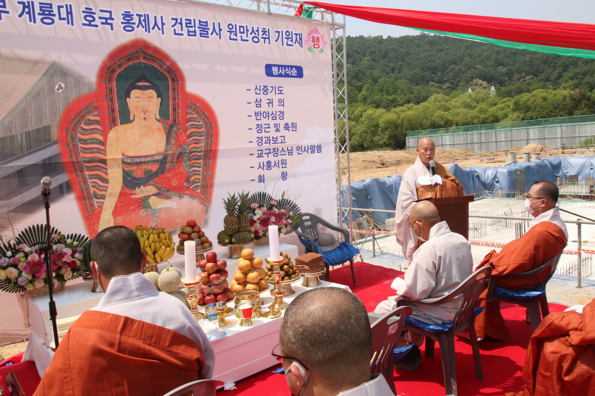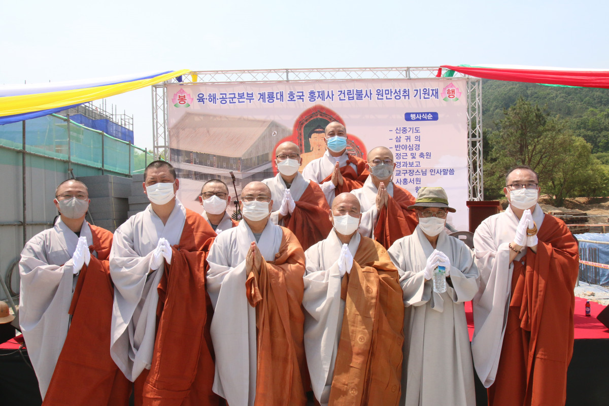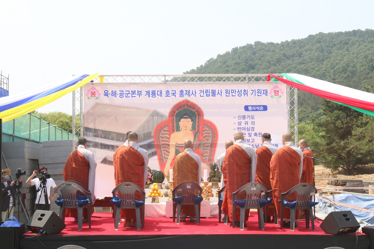 6월 9일 오전 11시 '육해공군본부 계룡대 호국 홍제사 건립불사 원만성취 기원재'가 불사현장에서 봉행되었습니다.