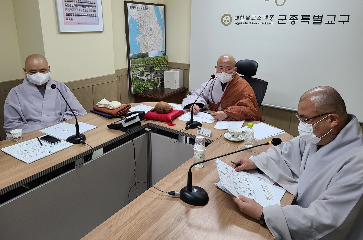 회의에서 교구장 선묵혜자 스님은 "코로나19가 종식돼 올해에는 법사님들과 얼굴을 직접 보며 회의를 하기를 기원해 본다."며 "군장병과 국민들의 건강과 안녕을 위해 기도해달라."고 당부했습니다.