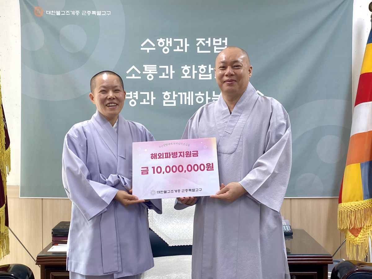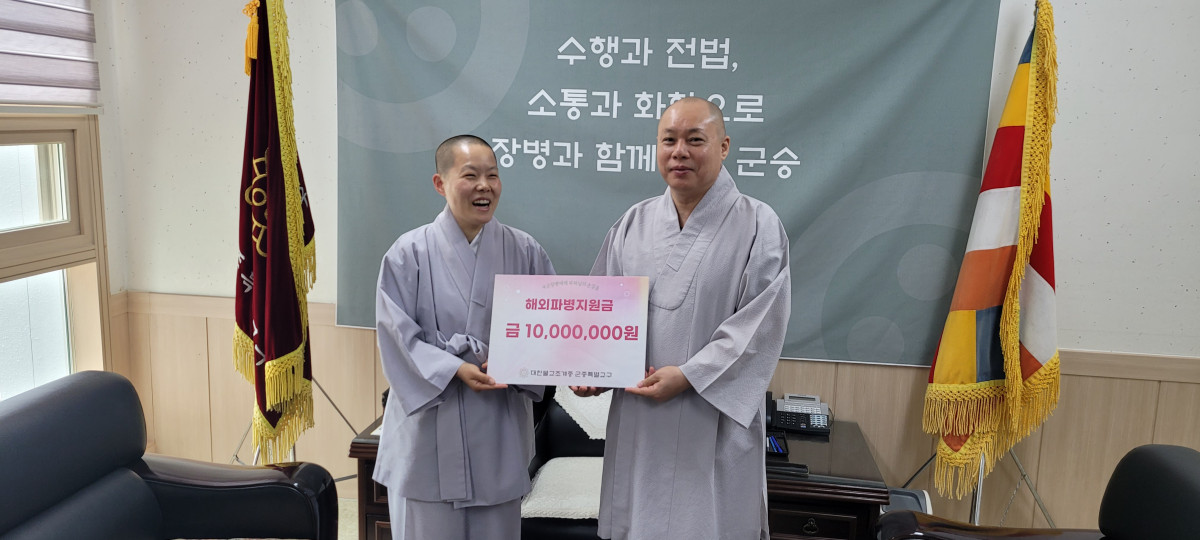 해외 군승파병 격려금 전달식 페이지 정보 작성자 관리자 작성일24-11-07 12:03 조회713회 댓글0건 본문 2024.07.12국제평화지원단 레바논 파병 균재스님 격려금 전달식 댓글목록 등록된 댓글이 없습니다. 이전글 다음글 목록