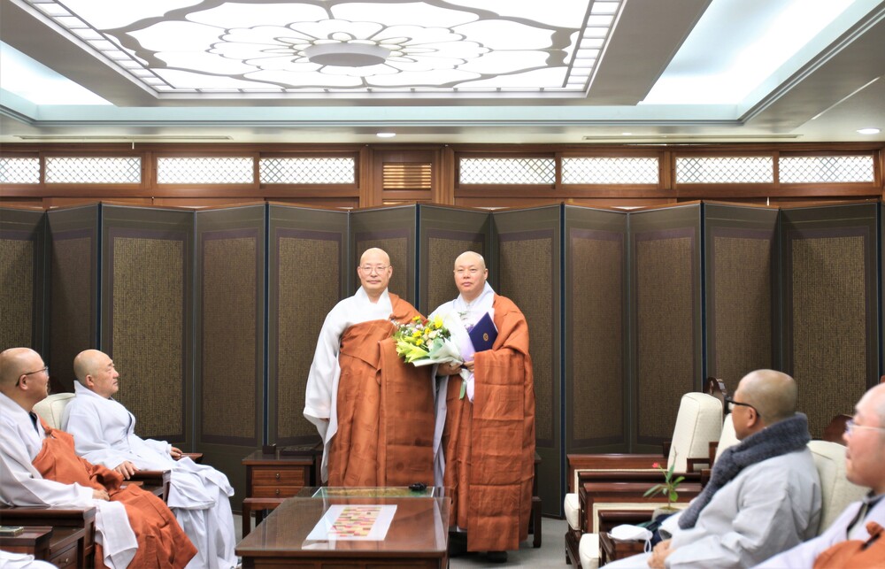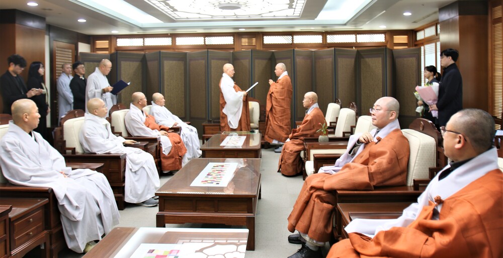 법원스님은 이날 종단 핵심 종책 사업인 '천년을 세우다' 불사 기금으로 1000만원을 전달하며 한국불교 발전을 기원하셨습니다.