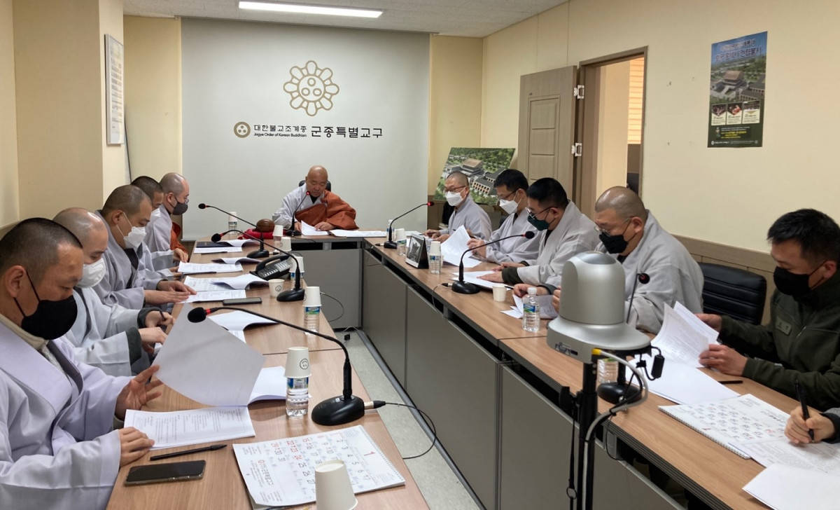불기2566(2022)년 12월 15일 오전 10시 30분에 군종특별교구 종무실 내 회의실에서 22-12차 종무회의를 실시하였습니다.