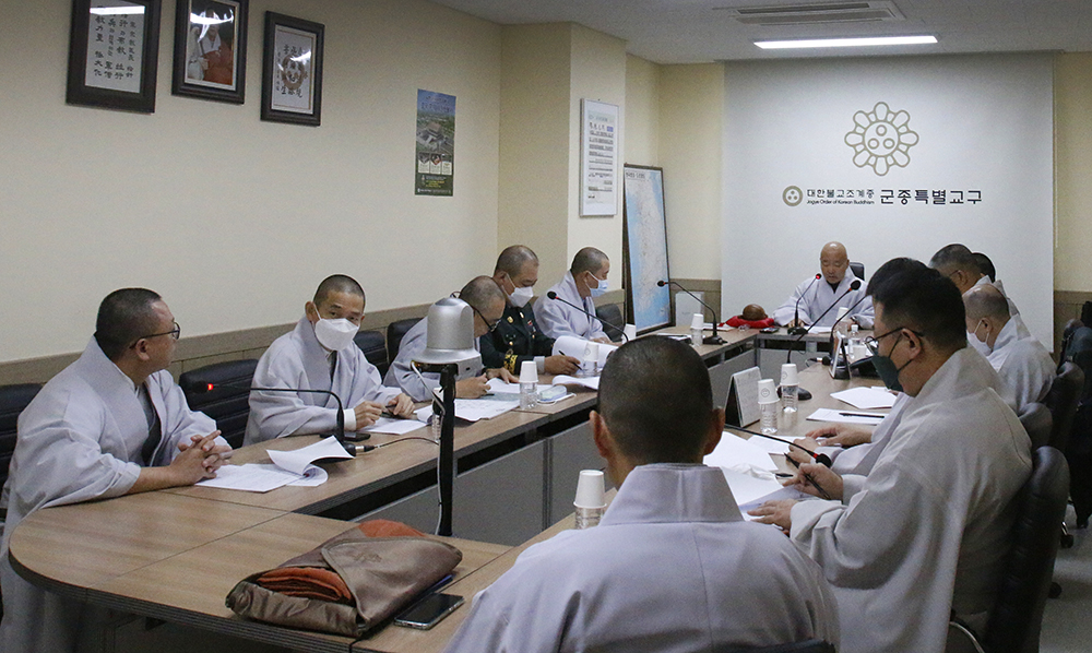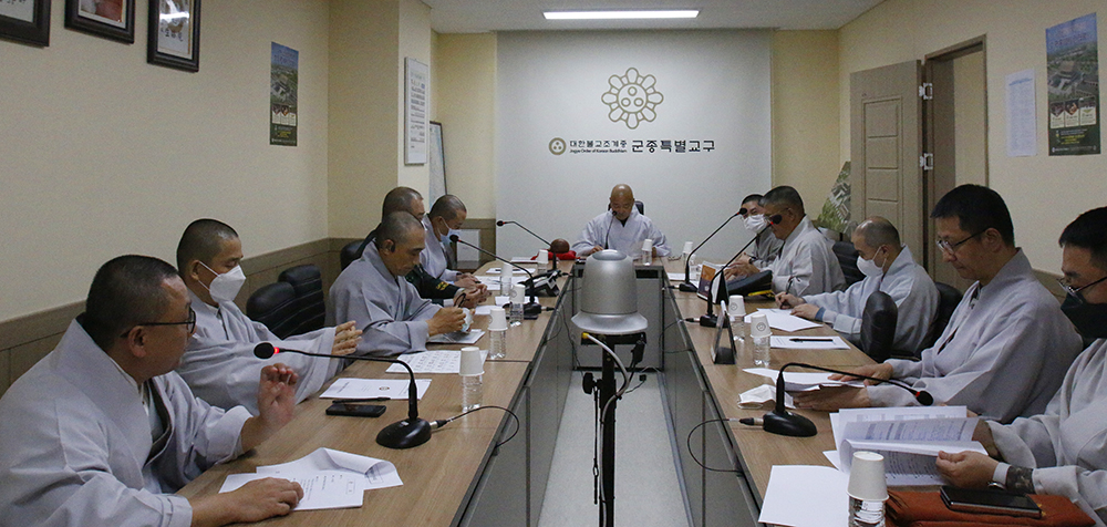 조계종 제6대 군종특별교구장 능원스님의 취임 이래 첫 22-10차 종무회의가 불기2566년 10월 19일(수) 14시 군종특별교구 회의실에서 실시되었습니다.