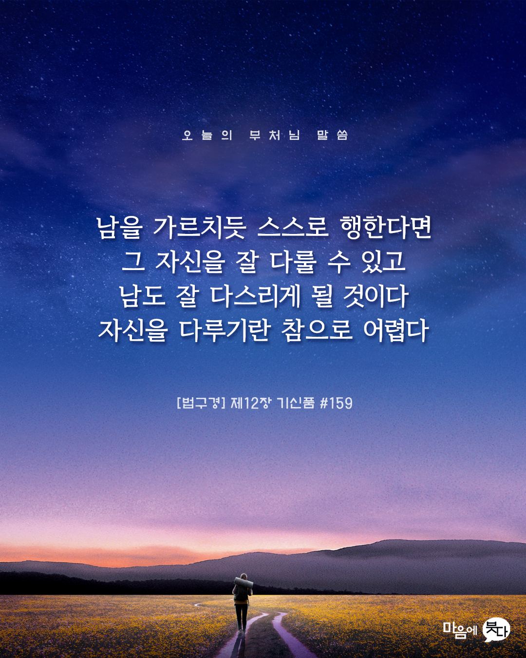 9월 23일 오늘의 부처님 말씀 페이지 정보 작성자 관리자 작성일22-09-23 13:22 조회1,135회 댓글0건 본문 9월 23일 오늘의 부처님 말씀 입니다. 나 자신을 되돌아 보며 나 뿐만 아니라 우리 주변도 잘 살펴봐주시도록 행해주시는 모든 분들께 감사드립니다. _()_ 댓글목록 등록된 댓글이 없습니다. 이전글 다음글 목록