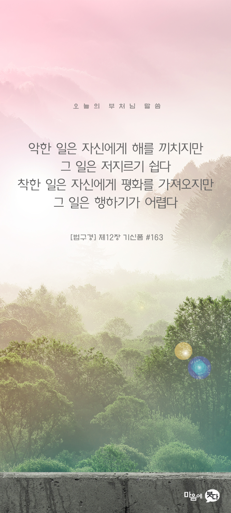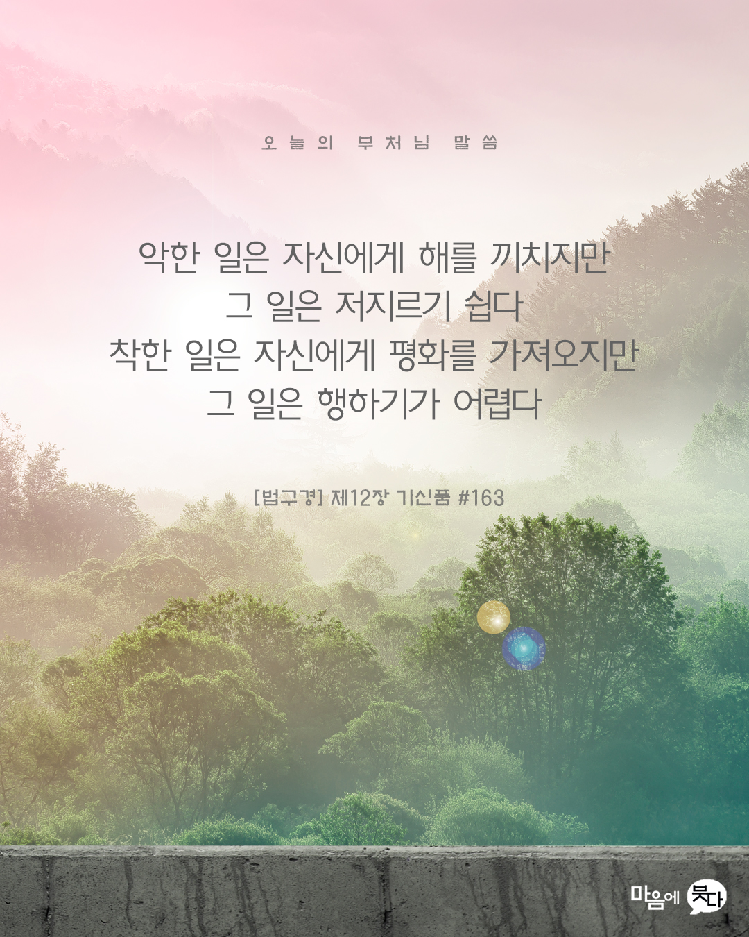 10월 21일 오늘의 부처님 말씀 페이지 정보 작성자 관리자 작성일22-10-21 11:14 조회1,165회 댓글0건 본문 10월 21일 오늘의 부처님 말씀입니다. 항상 선한 마음으로 군포교를 위해 진력해주시는 법사님들께 감사드립니다. 두번째 사진은 카카오톡 사진 설정에 맞는 크기입니다. 댓글목록 등록된 댓글이 없습니다. 이전글 다음글 목록