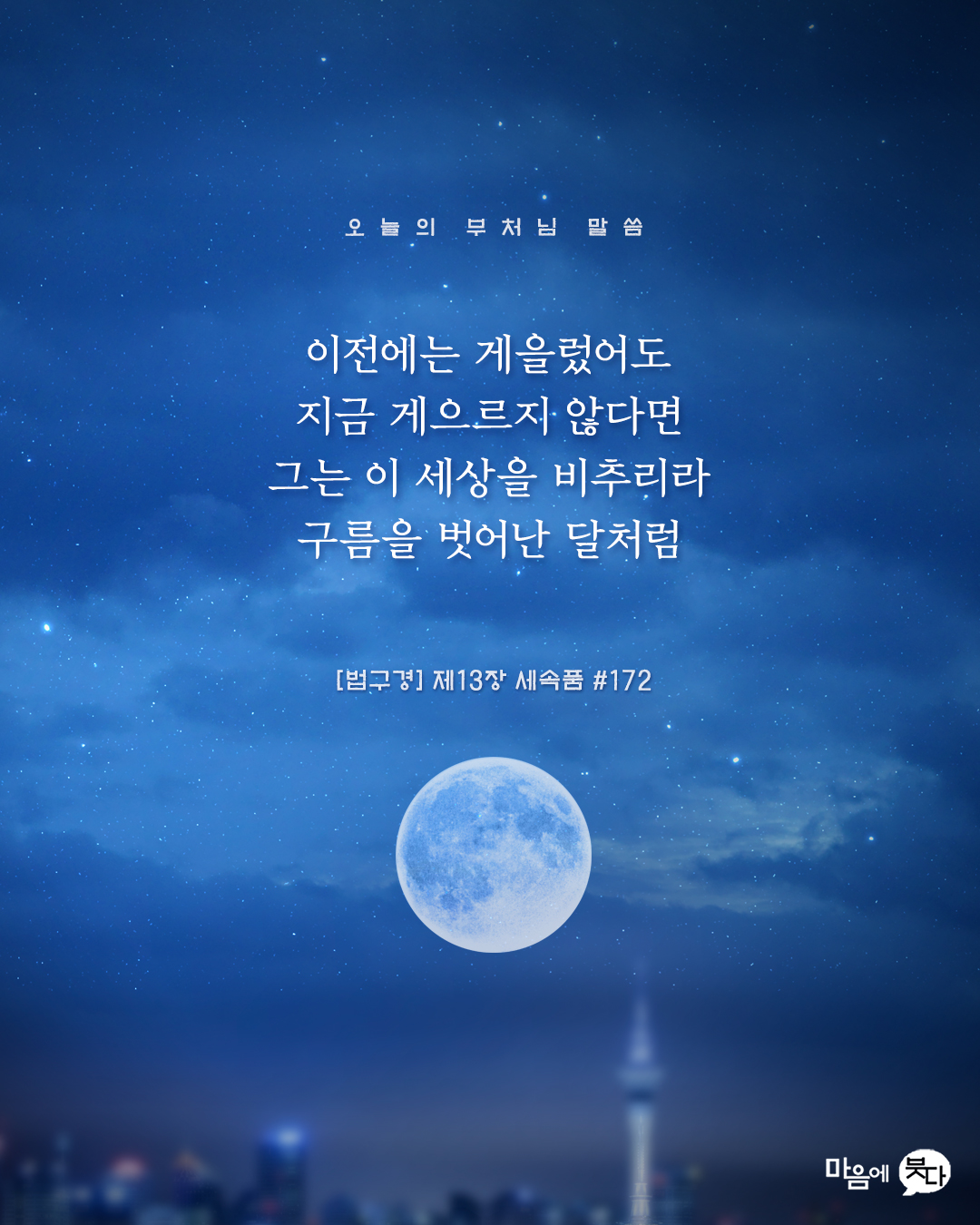 12월 23일 오늘의 부처님 말씀 페이지 정보 작성자 관리자 작성일22-12-23 10:22 조회1,257회 댓글0건 본문 12월 23일 오늘의 부처님 말씀입니다. 2022년 남은 마지막 날까지도 게으르지 않은 사람이 되기를 기원합니다. 댓글목록 등록된 댓글이 없습니다. 이전글 다음글 목록