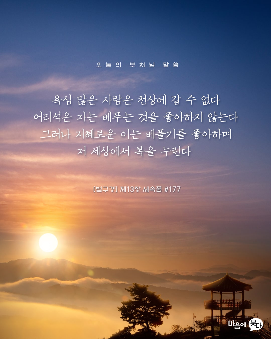 1월 27일 오늘의 부처님 말씀 페이지 정보 작성자 관리자 작성일23-01-27 15:31 조회1,166회 댓글0건 본문 1월 27일 오늘의 부처님 말씀입니다. 댓글목록 등록된 댓글이 없습니다. 이전글 다음글 목록