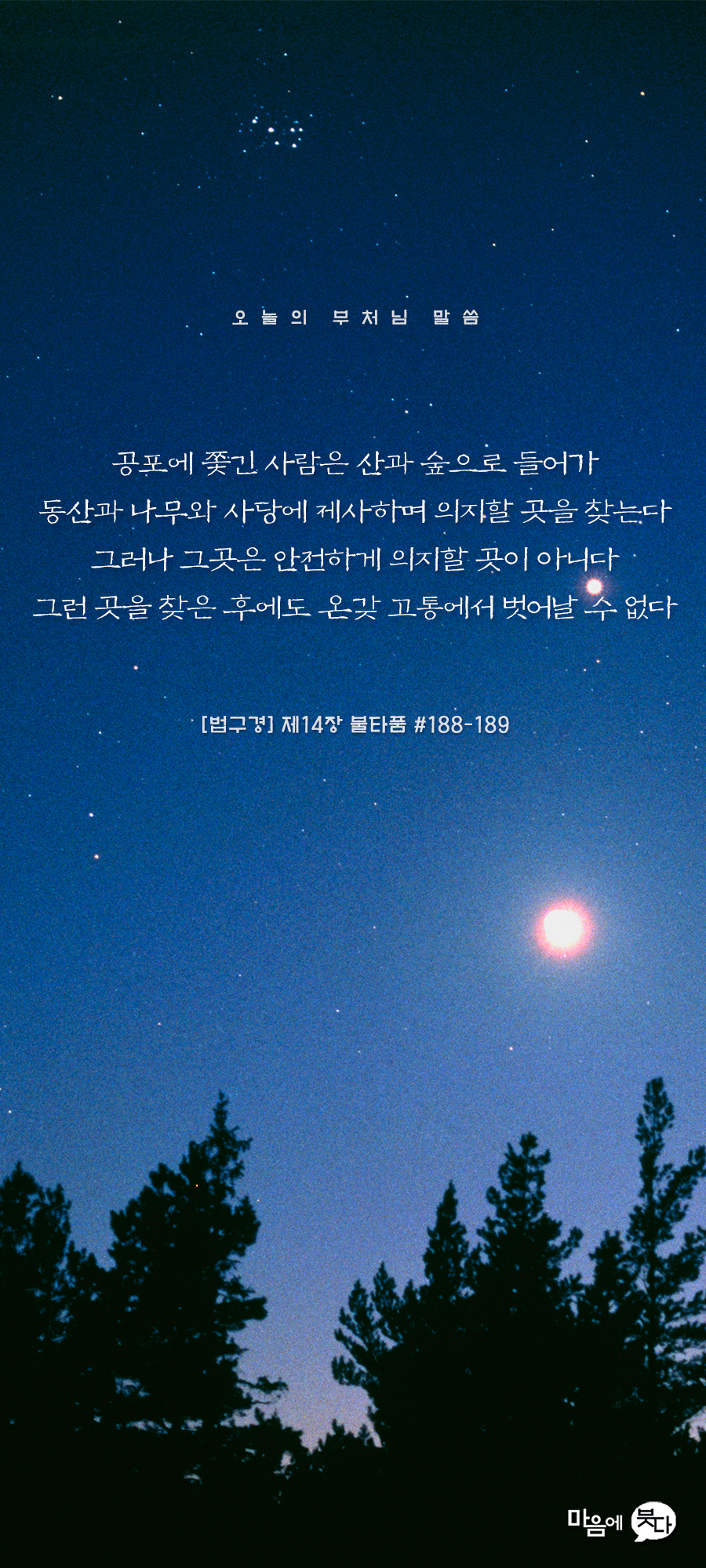3월 31일 오늘의 부처님 말씀 페이지 정보 작성자 관리자 작성일23-04-14 19:23 조회1,589회 댓글0건 본문 3월 31일 오늘의 부처님 말씀입니다. 댓글목록 등록된 댓글이 없습니다. 다음글 목록