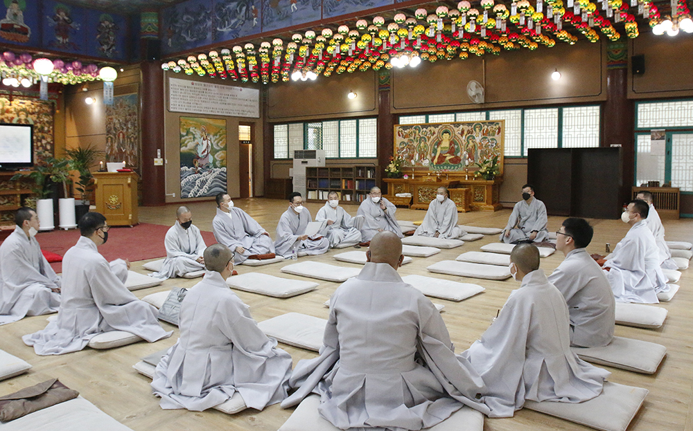 입재식 이후 선임 군승이 진행하는 군승회의, 종단과 선학원의 역사 교육, 그룹별 현안 토의가 이루어졌습니다.